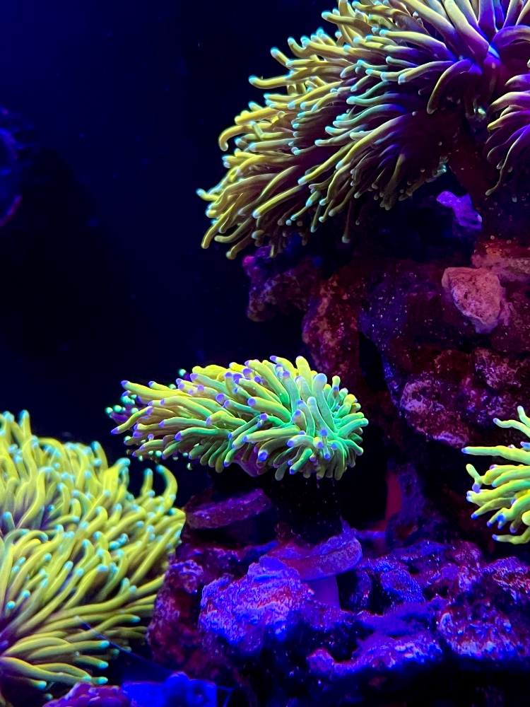 Hello reefers. I’m selling heads of Cc24 and cc21s today. The Cc24s are directly from Mancini in New York. I can send more proof through pictures of his setup when i was there 2 years ago if you wanna text me or dm me for more info. All the flesh bands are an inch or thicker, super fluffy, and healthy. Can provide more pictures/videos of the bands if you would like. Extension isn’t the greatest due to moving and having to restart in a new setup but they’re growing and very healthy. If you have a good setup for torches and have good extension they well stretch right out in no time. And the CC21s are directly from candy corals. They are in big colonies but i can cut them down to whatever you would like into singles/doubles and give good deals on those. I have two single heads of the CC24s and 2 splitting head colonies. That’s 4 pieces total. The singles im letting go for 1000$ each and the double heads im doing for 1500$. I can work on prices if you’re not low balling. Always willing to haggle. The cc21s I’m doing for 150$ a head. And if you want colonies or multi heads i can cut some really good deals just talk to me and tell me what you’re thinking. They all insane deep coloration and are ready to go. I’m located in the Exeter nh area. I’m only doing local pickup or i can meet you somewhere half way or even deliver if it’s not too far. But I’m willing to make anything work, Only about 45 minutes from Boston. Shoot me a text or call at 603 969 5797 for inquiries or more details. Thank you very much. Hope to do business with you.