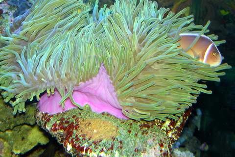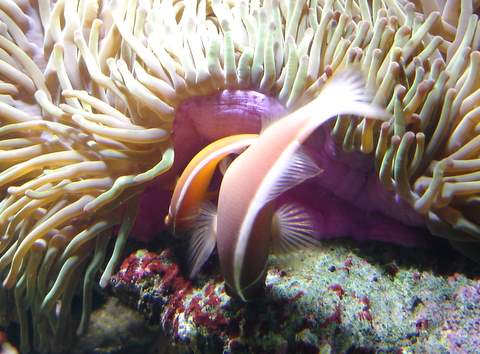 Preparing the site. Nice realestate. First they bite the anemone until it retracts, then they clean every bit of algae and debris off of the rock