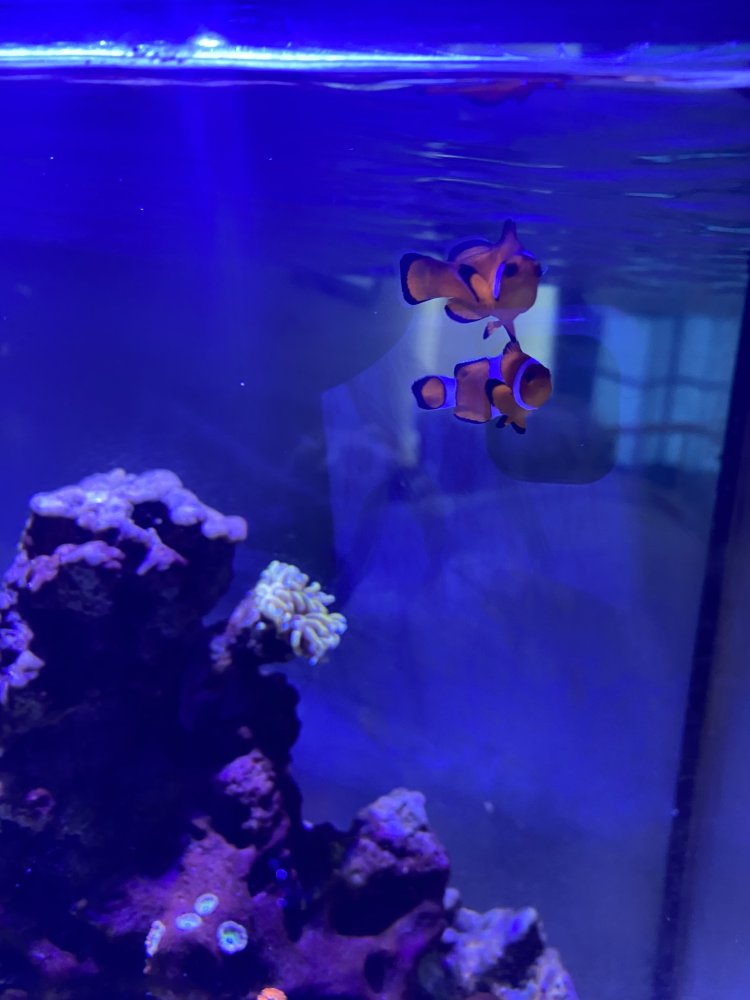 Pair of clownfish I’m looking to get rid of as I’m moving soon. Both are healthy. The nearly naked clown has become the dominante female and they get along really well. Very little aggression between them. They also are not aggressive towards me when I put my hands in the tank.