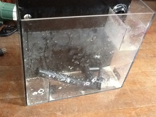 Had found a strange sized tank for a sump from a member (20x10x16.5"), but it was taller than my 10g so thought it would be good there.. Went to drill it and the entire tank was tempered glass. The next was the 10g I drilled to replace the taller broken tank for sump. It shattered at the return, too much movement and too thin glass.