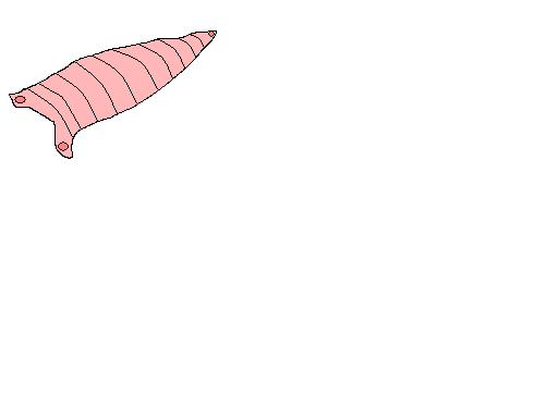 On one end there is a single )Ill call it a mouth and on the other Tail? end it kinda branches off and there is a mouth on each end of the tail?)). It is now about 1/2" in lenght and about the size of a pencil wide.