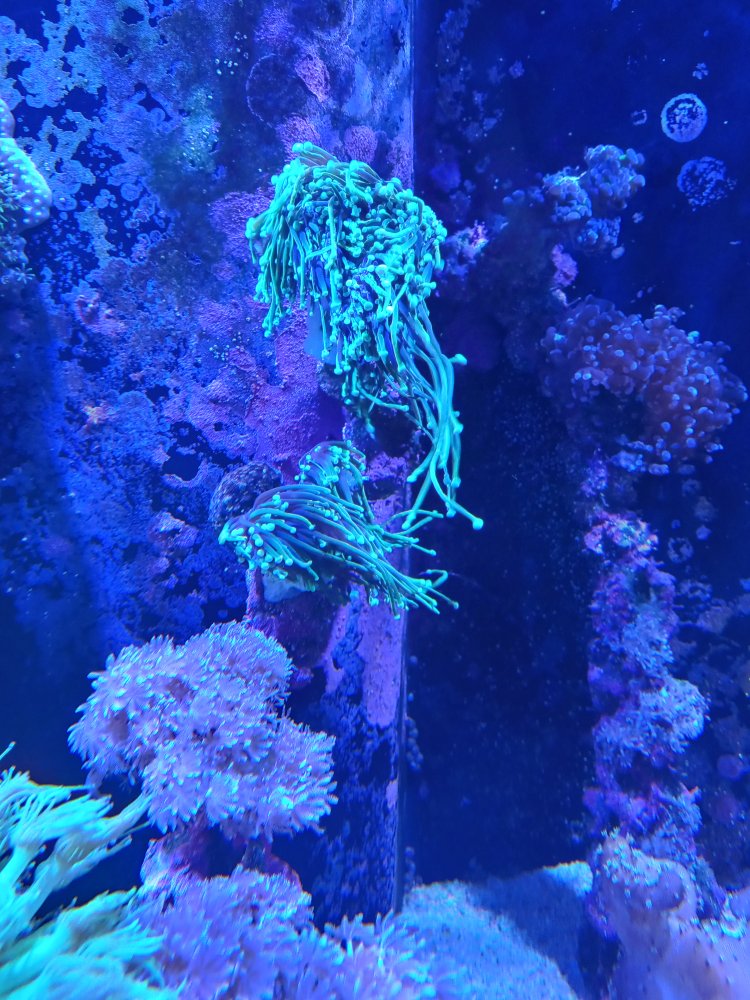 First time cutting a torch. Messy job. Any ideas next time i have to do this. Tenticles just wont retract. . Looking mighty pissed off. Colony at top. . 2 cuts below 4 plus heads each and one tiny one fell off. Lol.