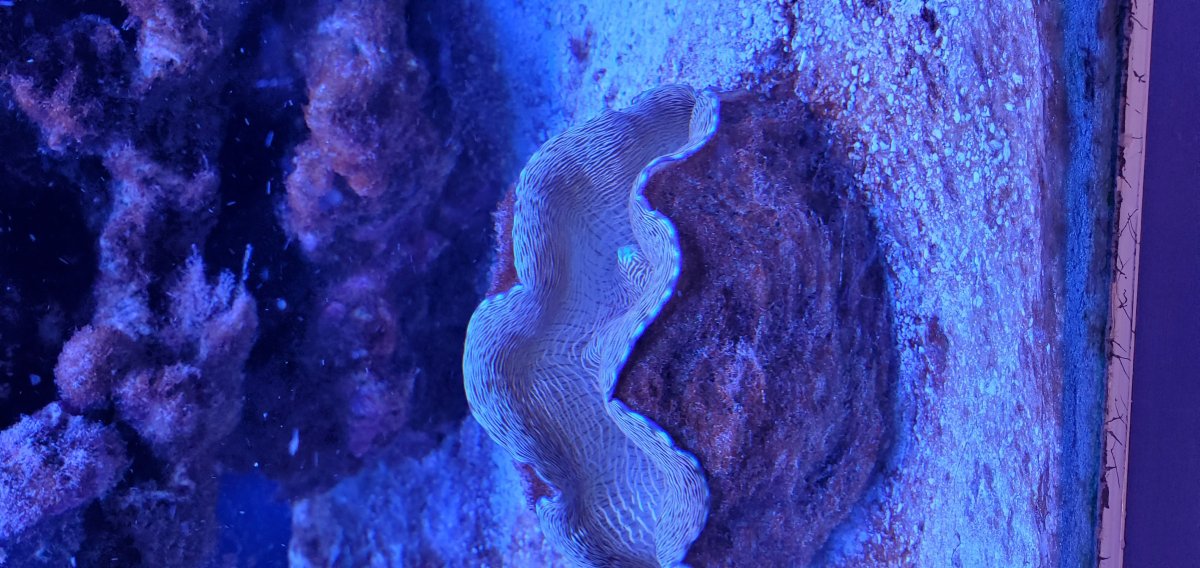 I dose kalk, but not sure how much is going in. it should be saturated kalk, but doser seems unhappy with the solution. Working on this... Clam seems fine. no coralline algae on sides. The clam is about 6 inches.