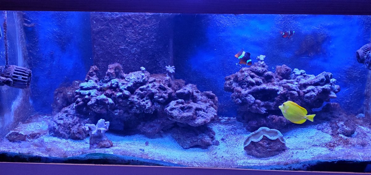 I have been frustrated with cotton candy algae as I cannot seem to control it. If Mexican turbos cannot be purchased reliably, then the tank will go nuts. I tried starving out algae so reduced feeding, raised light. it didn't go away... So tank has been neglected and dinos have set it. It probably had an infestation for 6 months. The 2 clowns, tang (noticed bumps on skin today), and clam seem happy. The zoanthids have been closed for months. The iridescent toadstools have not popped out either. I have decided to either (1) get rid of everything and nuke tank, (2) combat the dinos and cotton candy, or (3) just shut it down. I am trying option 2 right now, but may lead to option 1 based on recommendations and results of my efforts.
