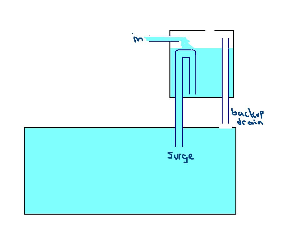 The design I was thinking of is the siphon one. It will be loud, but simple. The siphon starts when the water line gets about where it is in my artistic rendering.