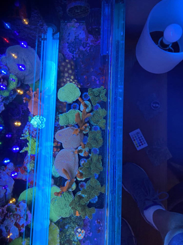 Making room for new additions. I have mandarin clove polyps, green pocillopora, pink/blue monti caps, red monti caps and several 'chile greetings' montis (not sure if the are chile pepper or season's greetings. Frags are really quite large and well encrusted