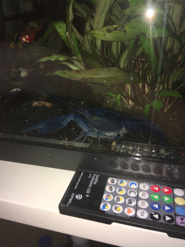 I’ve had an absolute blast constructing my first what I like to call an exotic life planted it’s a 36 gallon bio cube and I’ve just run the gamut of my limited budget buying Malaysian driftwood for $15 planted have been donated some just Polynesian substrate and just really really making a dollar seem like $1.50 and I love it it took me like along with me the adventure has been when I purchase as a juvenile blue cobalt lobster/crayfish I dub to remedy because I figure blue is a cure for the blues and family not to mention it’s a great micro song .... well let’s fast forward to today remedy was about an inch and change the time he smoked it three times he’s around 6 1/4 inches now . My emerald green tiger barb my neon yellow tiger barbs my one red tiger barb I’d like prize winning they look like trout I’m in the huge I couldn’t imagine putting any more fish in the tank even know that tiger barbs on more comfortable with six or more in their schooling. But I have good news for remedy he won’t be alone soon I did my homework extensively because I don’t euthanize anything and I read extensively that in fact a large blue cobalt lobster a while in fact get along with a female spectra white crayfish a relative size , So that being said even though I purchased it through Amazon I contacted the distributor that was going to sell me the lobster/crayfish via Amazon and he was more than happy to get me the largest female spectra crayfish he had in his farm I’m not necessarily looking for them to meet but it would be cool to see a bunch a little white crayfish one around how much a little blue crayfish runaround and a lunch at a bunch of baby blue crayfish running around which I would happily donate , Remini my giant lobster I appreciate the fact that he is in on the Valare and a predator particularly at night that’s why take the moon lights off he tends to get along with the fish tiger barbs they’re kind of been a little bit for nippy anyway so and then get out of their own way I have an open top tank nothing seem to jump out of the tank itself for once had to go shrimp jumped out of the tank it just so happened I Sorret her back in the tank and haven’t seen it sense so I’m assuming it was somebody’s lunch. Crystal Crystal I dumped the spectra female lobster and the gentleman guaranteed me at least 4 inches if not he could find someone a little bit bigger room she is in route according to Amazon‘s GPS website so I feel like a father waiting for the child no seriously I mean I’m not passionate I’ve had a fishtanks and I was like his old I’ve had a saltwater tanks I’ve had seahorses I’ve had one fish in Houston enemies I’ve had Fishtank that would blow your mind I’m not trying to brag it’s just it’s just something I’m just a dork about it I’m just it’s just a hobby having some people have no hobbies and I just tend to be an aquatic dork that’s the room the name that I’ve blessed the female Spectra lobster that is in route to my house I actually Jenn I have to speak to the him the farmer that actually raised the iamb crayfish traps/lobsters within the states and he was happy enough. I actually don’t buy a remedy I’m store-bought food even though I work for a pet store I just feed him him dead flies a vegetable pellets a spectra fish food peas and corn little bit a water and I put that said slurry tin ice cube tray and I let it freeze and then I feed him with tongs he seems to love it and maybe that’s why he’s getting bigger and bigger and bigger and soon he’s going to feed me with tongs. I would be happy to post pics when Crystal arrives but I know there’s definitely a tremendous amount of the discrimination between saltwater and freshwater it’s kind a like skiers and snowboarders around here even though I’m a salt water guy as well I just really don’t have the time nor the budget and I’m having quite the blast with my little bio cube
