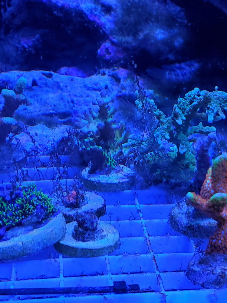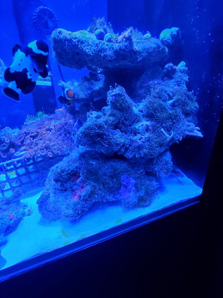 I down sized to a nuvo a few months ago and took the rock, live stock and about 20 gallons of water. Filled the rest with new water. Also added new sand. I just realized as I'm typing this I was running biopellets on the old system. I started with a little patch of gha. I started to remove it by hand and uped my water changes. 5 gallons once to now twice a week. Started to change gfo and carbon once after water change and still was spreading. I am dosing vibrant 4ml a week. It is going away in some areas between the manual removal and cuc. Now it looks like I may have some dinos. I'm going to post a few pics any suggestions are appreciated.