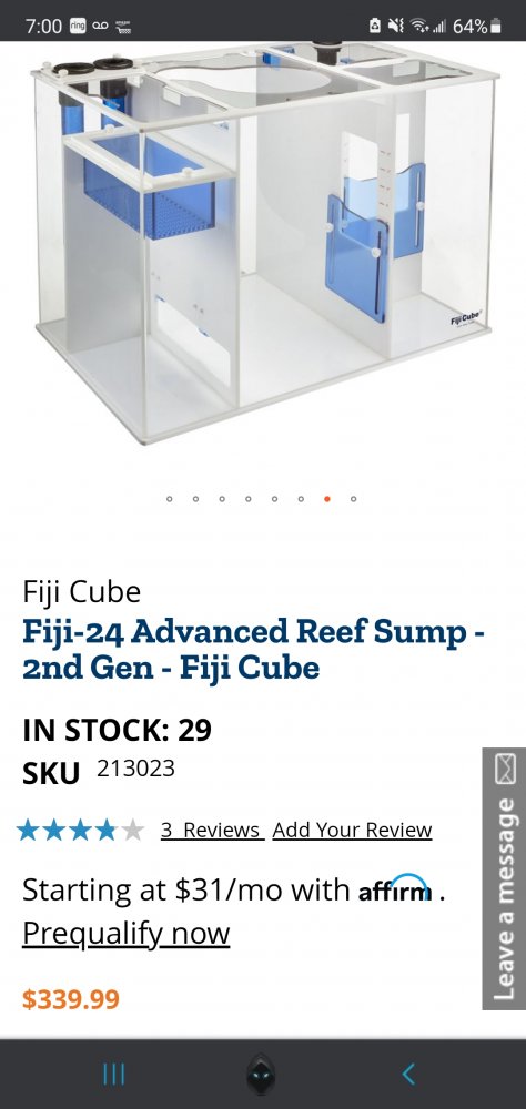 Came with a system I picked up but I already have the fijicube 30 inch sump. Super clean and has a fuge compartment built in. New is 330.00 plus tax and shipping. Asking 150.00 pick up in methuen.