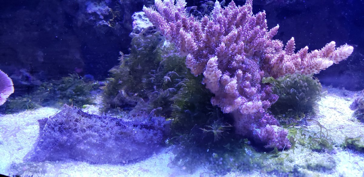 - 3 straight heavy weekly water changes using aggressive manual removal and sand stirring, coupled with newly added phos reactor (100 bucks at brs) to lower Phos from 0.1 to .03