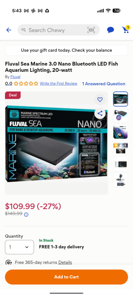Selling a 1y old fluval sea nano 3.0 I have been using on my spare tank. I am thinking of upgrading now that I am revamping it to be a frag tank. It's a nice little light that should power a nano reef or refugium, got a nice 5-channel app control function as well.