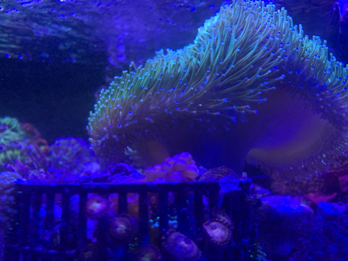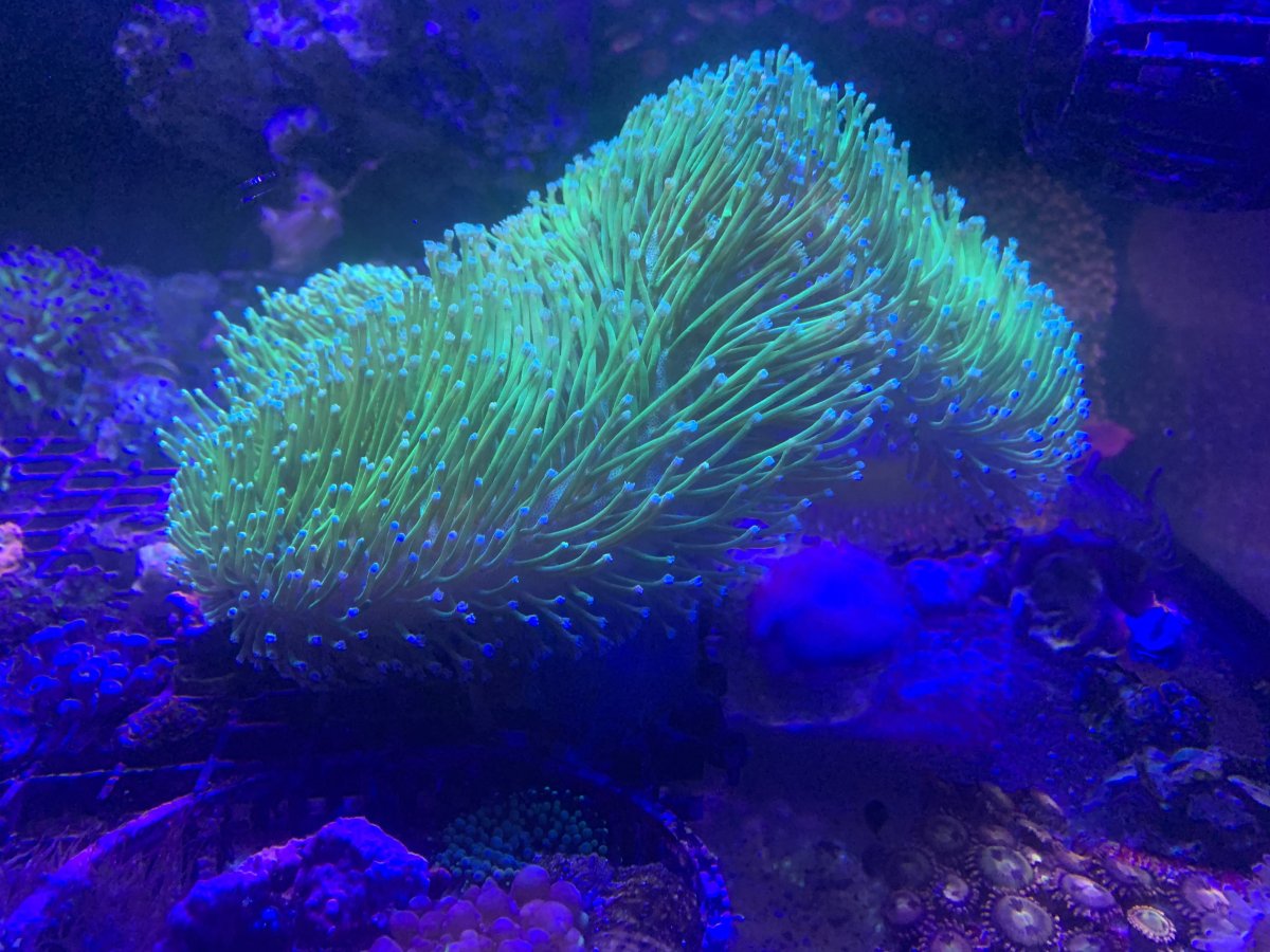 Just after lights on, mother colony is already looking a little better. No obvious signs stress from other corals in the tank.