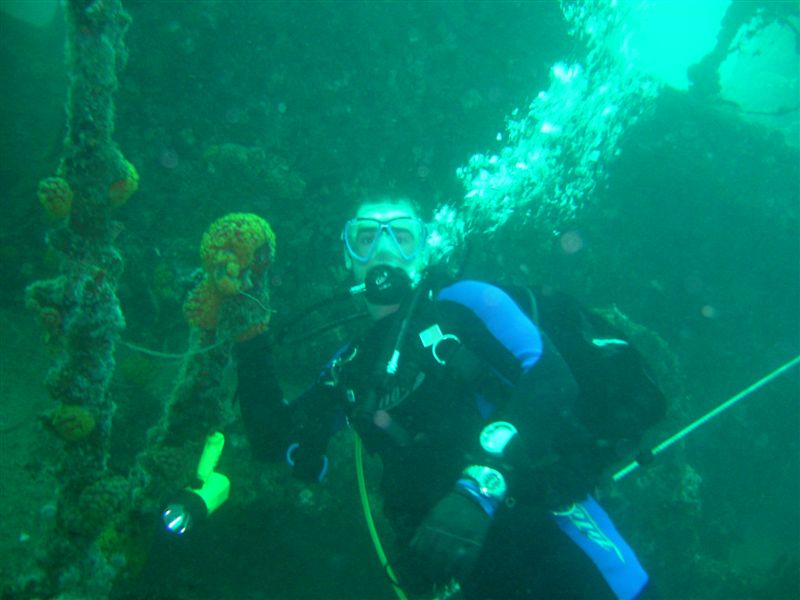 It grows all over the wrecks in florida, I had to pose with some, even though it is a crappy photo of the animal itself. This is midday, in about 100 feet of water, below the deck of the Hollyhock (renamed the Captain Dan), off the coast of Fort Lauderdale Florida.