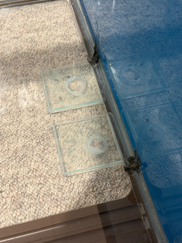 The 90 was drilled for an internal overflow that was removed and plugged with silicone and glass. The right side was drilled to accept an Eshopps eclipse L external overflow. Overflow is not included with the tank.