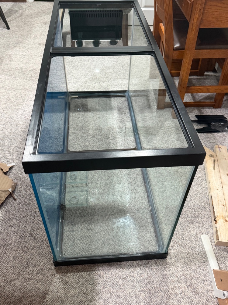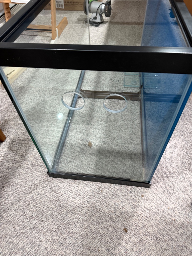 The tank has been cleaned and repainted. Internal overflow hole on the bottom of the tank have been sealed with 3/8” glass and silicone. Never got around to water testing, but I’m pretty confident there won’t be issues.