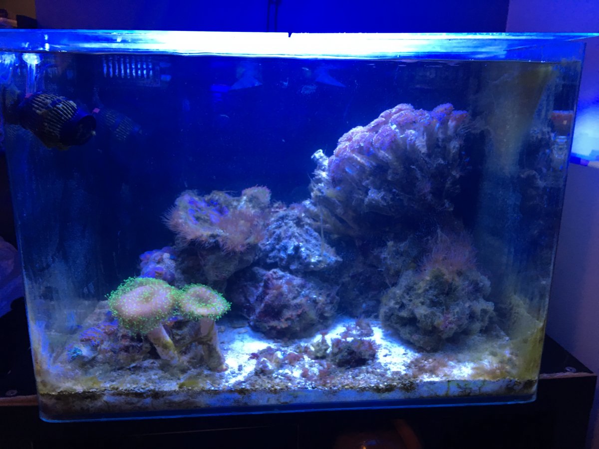 Full Transparency: The state of the tank is not great. I've had an aiptasia infestation that I was never able to fully get in control of and found it a bit demoralizing. Plus, there's some algae and detritus throughout. I had been keeping up on water changes, save for the last month or so.