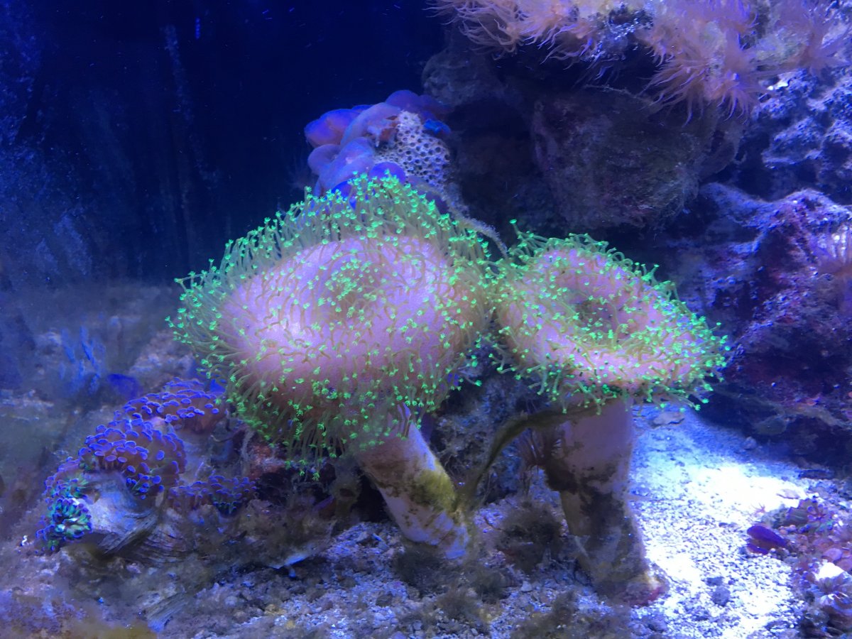 The tank is currently in use, and has a few assorted corals (listed below) and two clown fish. The link below includes the full breadth of equipment and livestock and details about its condition, including original price and a link to more product information, when possible.