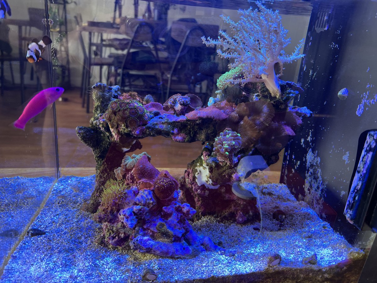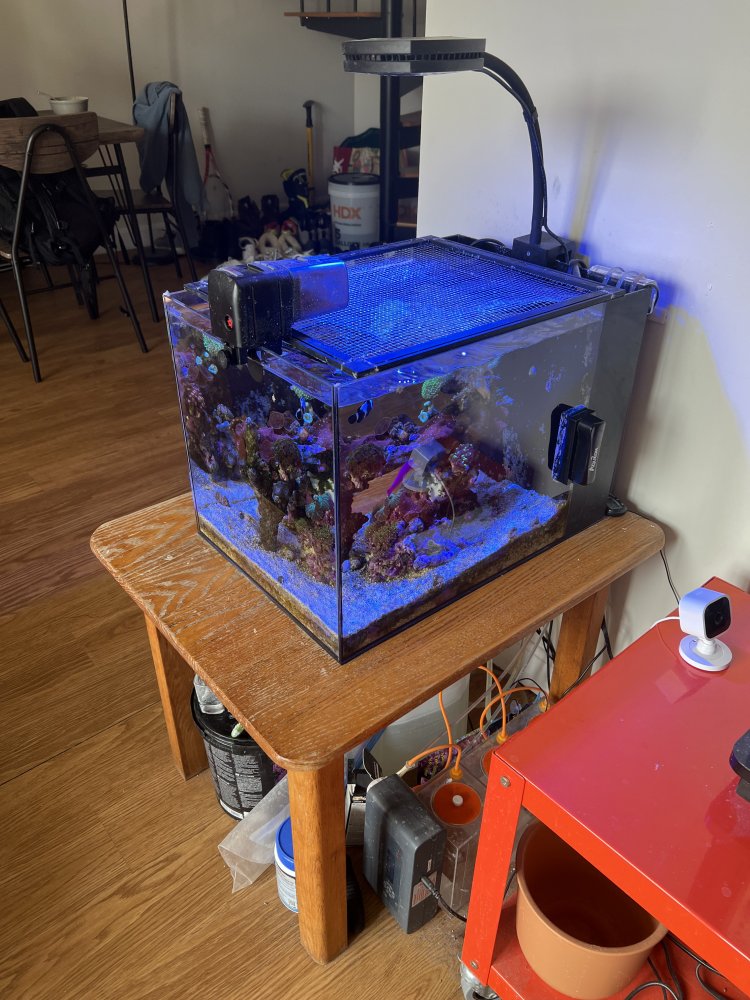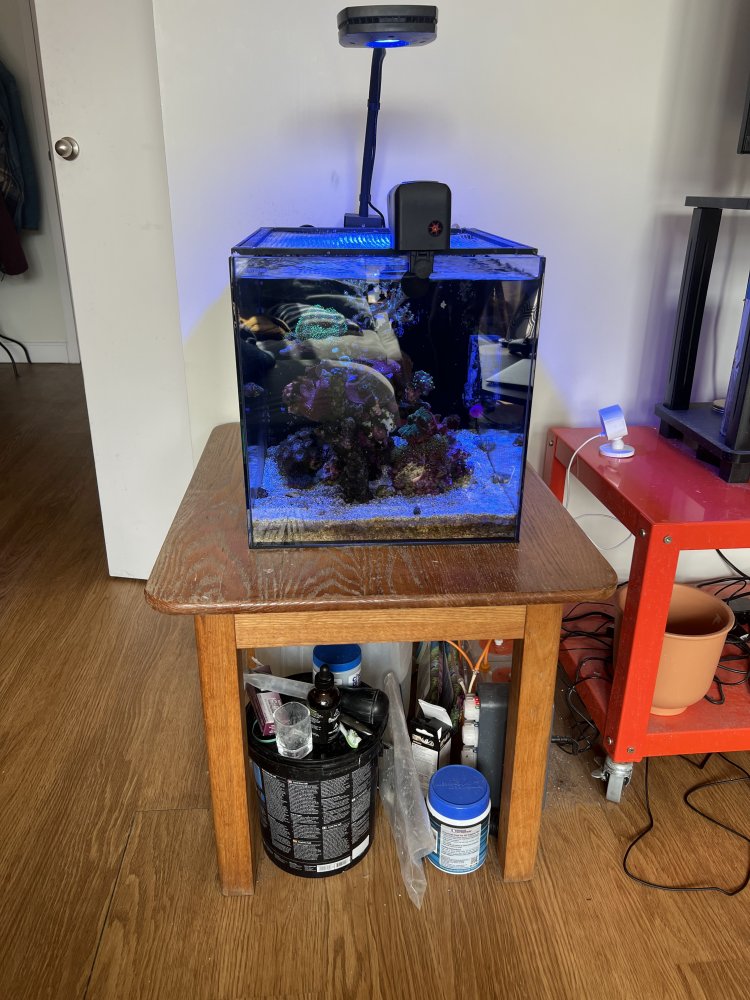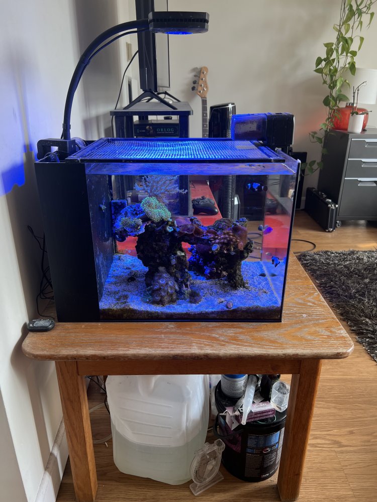 The tank is a Waterbox Peninsula Mini 15 gallon with an AI Prime 16HD Reef light. We use a Duetto Dual Sensor ATO, Cobalt Aquatics heater, chemi pure blue + poly filter pro for filtration, Sicce Synra 0.5 pump for flow, and Balling 3 part with a Jebao automatic dosing pump. System is stable at bi-weekly 1 gallon water changes. I'm attaching a list of everything that's in it in and would come with it, as well as pictures from last week. Price 1200, but willing to negotiate! Pickup is required, but we are willing to help transport things to your car and put everything into buckets.