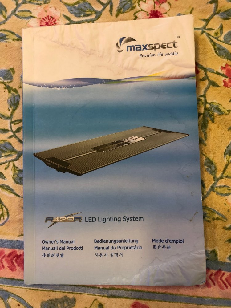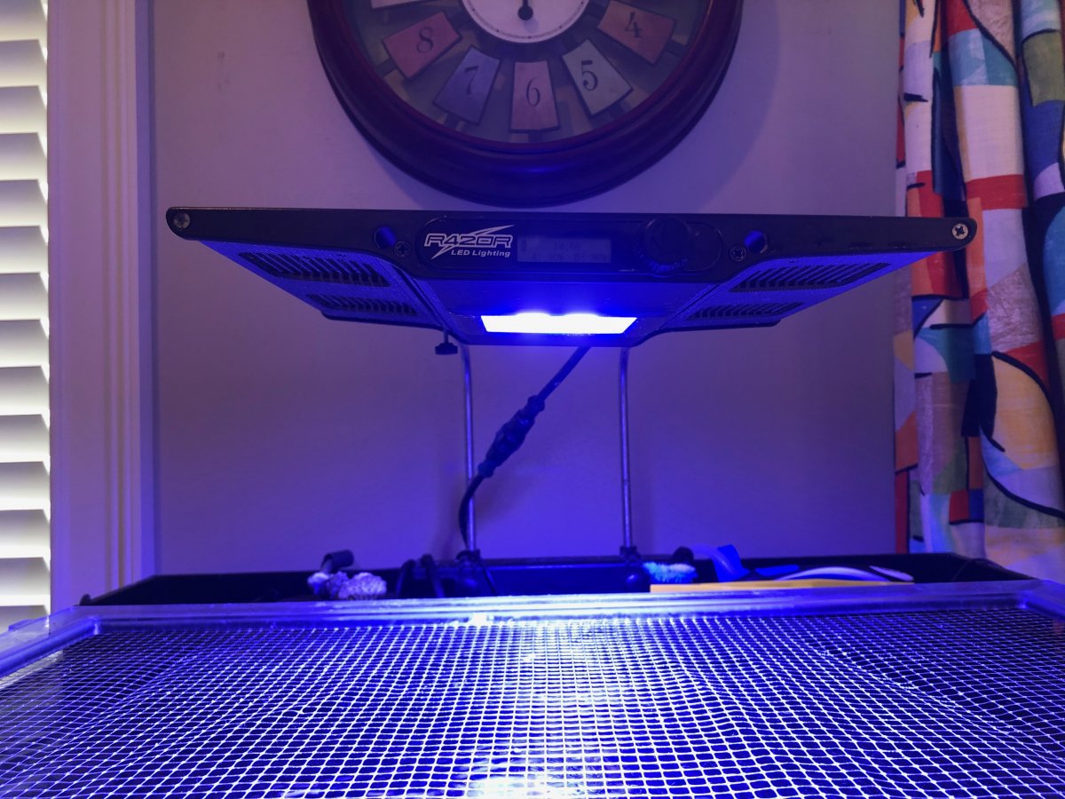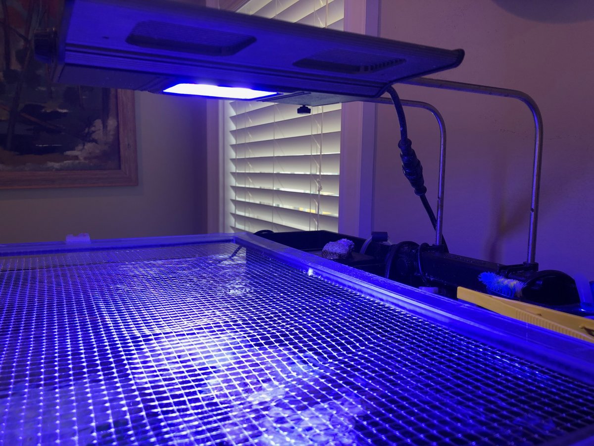 I just got a new light for my 40g so am selling my old light. It puts out a lot of light and can grow SPS and LPS no problem. When mounted on my 2' X 2' 40g and set at 100% the PAR is 250-350 below the light and 100 in the far corners (measured 2 weeks ago). Lots of life left in the light, which is perfect for an aquarium 2'X2' or smaller.