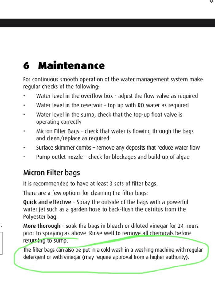 This was found in the online version of the Red Sea Reefer Classic Manual. I know I need that approval… Also, are they saying you can use literal laundry detergent for cleaning filter socks?
