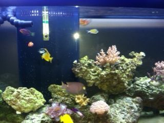 corals. We've learned a lot and can never learn enough.We had great luck so far, knock on wood, but have sadly had two deaths- one of a beloved Foxface (ich= the LFS thought it was fungal and it ended up being ich). The second was of our pride and joy Elegance coral. It fell to a case of brown jelly disease (per our LFS). We had a beautiful white anenome but she ran wild through the tank constantly and was very close to slaying a good lot of corals. She went back to the LFS