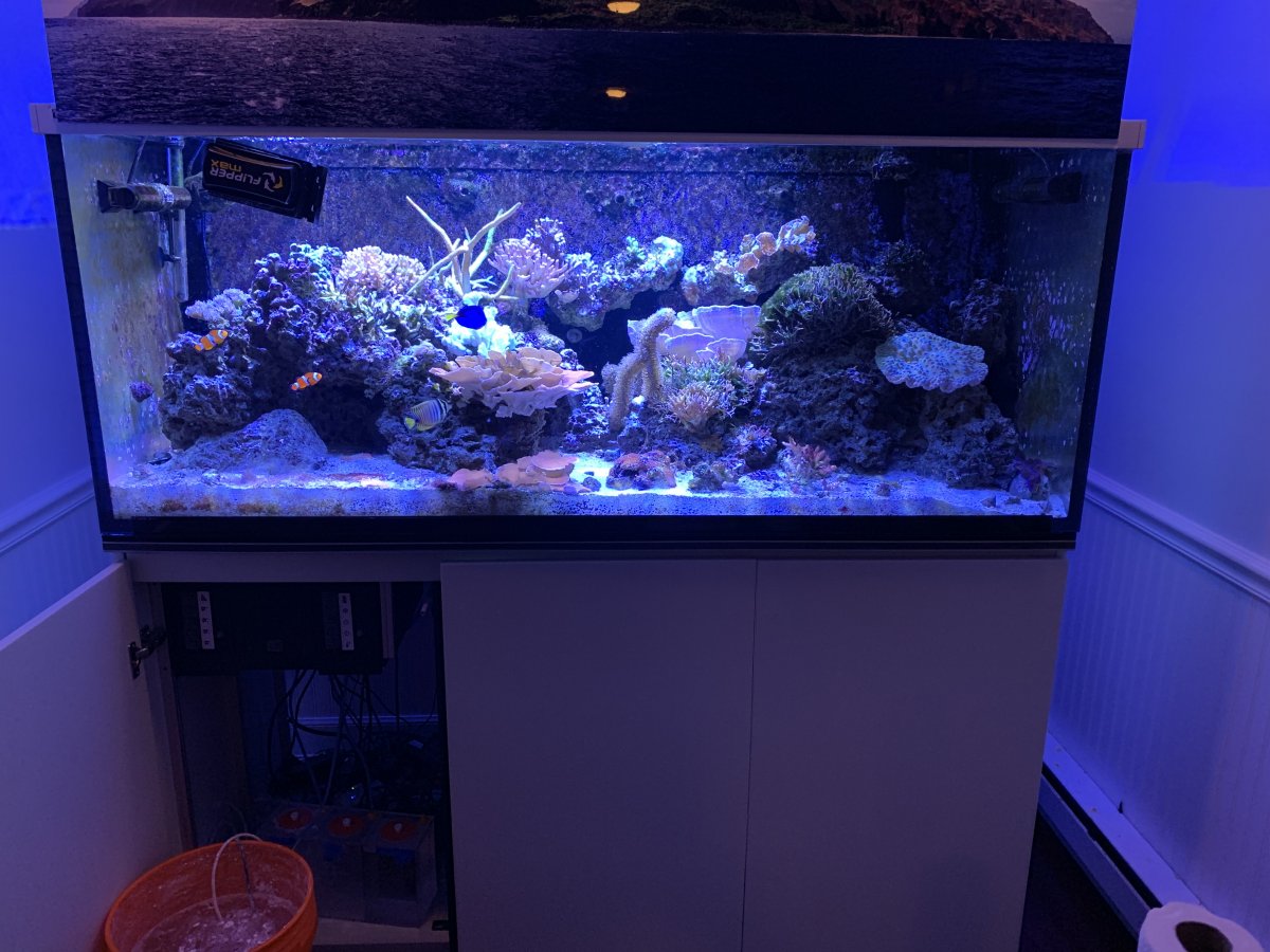 Well I’m moving on and leaving this hobby behind. I’ve got a red sea max 650 set up. Approximately 180 gallons with the white aluminum cabinet, stand, sump, regal 200-s skimmer, UV light, 3 Pump bubble magnus electronic doser for calcium/magnesium/alk, return pump, (4) pump heads for rear of tank (hidden behind glass facade), (2) gyre wave makers with controller, tunze auto top off pump with 40 gallon top off drum comes with optical eye and back up floating switch to sense water level and keep it stable. A few heaters a bunch of hard corals a few clams and 2 clown fish, blue tang, Red Sea sailfin tang, 6 line wrasse, about 200-300 pounds of live rock and sand. I live in south Kingstown RI, preferably I would like one person to take this all off my hands, if that’s not possible I will probably find a home for the livestock and then break down the tank.