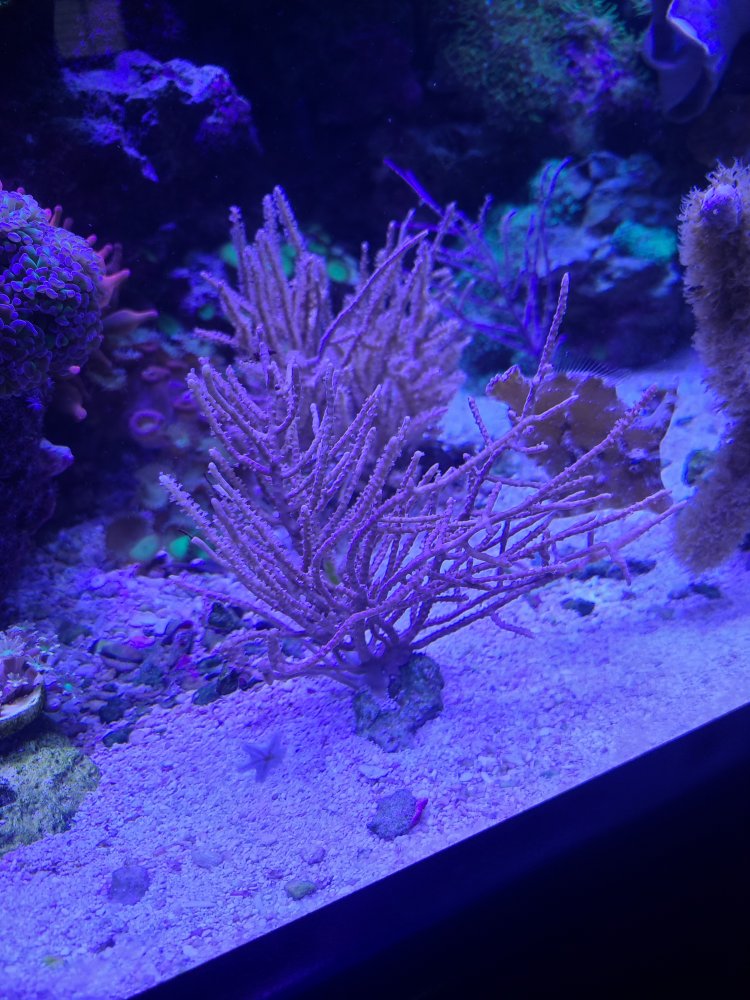 Purple Gorgonian is a daughter off of a colony I have had for years, this was fragged maybe a year ago and doing well. It is approx 4"x 4" and well branched $40 or trade