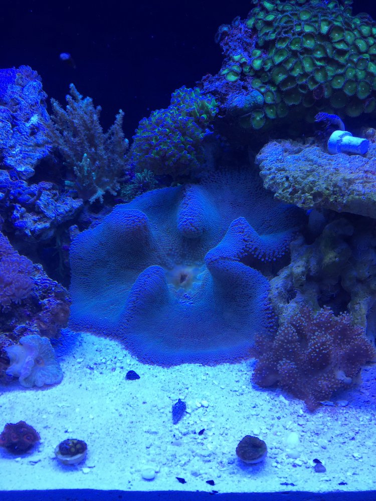 I got this guy for free yesterday, based on the pictures he looked a lot smaller before I placed him in my tank and opened up. Now its taking up a third of my tank.