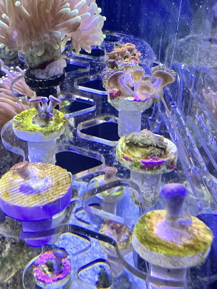 Another unique thing going on is that I'm currently going fishes due to a velvet or brooklynella outbreak (have about 4 weeks to go to hit the 77 day cycle to reintroduce fish). I do have various snails, a cleaner shrimp, emerald crab, tuxedo urchin, and conchs to help keep things clean without fish.