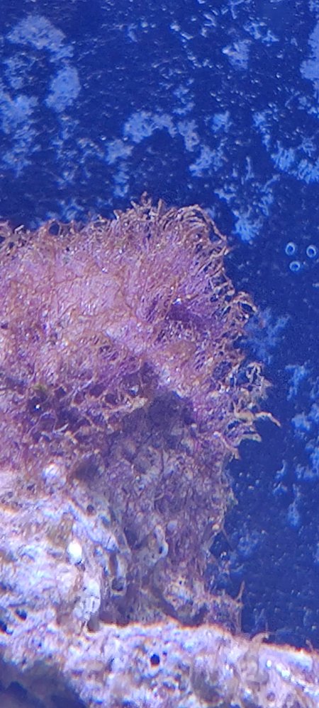 It looks like red hair algae to me. If it is the same, kind of wiry stuff that I have, then I can give some advice, since I have it under control. It used to cover almost all my rocks, but now is mostly difficult to find in my tank. First, it is impossible to starve it out. I have tried that route. It is way, way more resistant to starvation than coral. Everything else in your tank will starve to death before this stuff dies. Also, you can't kill it by turning off the lights. It will survive for months in the dark. But, luckily, it seems to taste good to at least a couple different things. The foxface rabbit fish likes to eat it. He will keep it mowed to about 1cm. Probably other grazing fish like tangs will eat it, but I have never tried one of those. Most importantly, emerald crabs really like it, and they can probably clear a tank of it on their own. But emeralds are very haphazard eaters, and so it takes a lot of them. I had close to 10 emeralds in my 50g tank before I really noticed it starting to disappear. Also, I think the turbos may help to clear it, but only after it gets mowed really short, like 1mm. Lastly, it may be impossible to completely eradicate, since its little runners go into every tiny crevice in every rock. But, on the bright side, it will feed your grazers indefinitely.