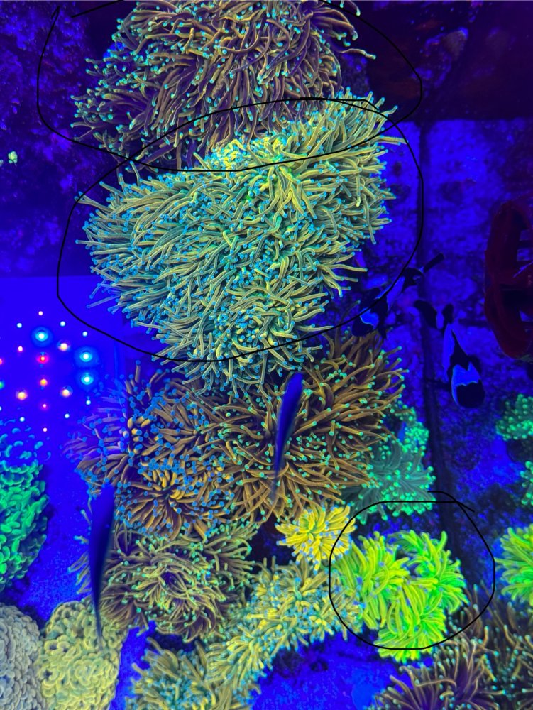 Time to trim my torch garden. Looking to sell some pieces. First picture is of the mother colonies. What I have circled is a dragon soul colony, then a tck master torch colony, then a TSA holy grail torch. These have been in my tank for a minimum of one year and grown under LEDs. Pm is best