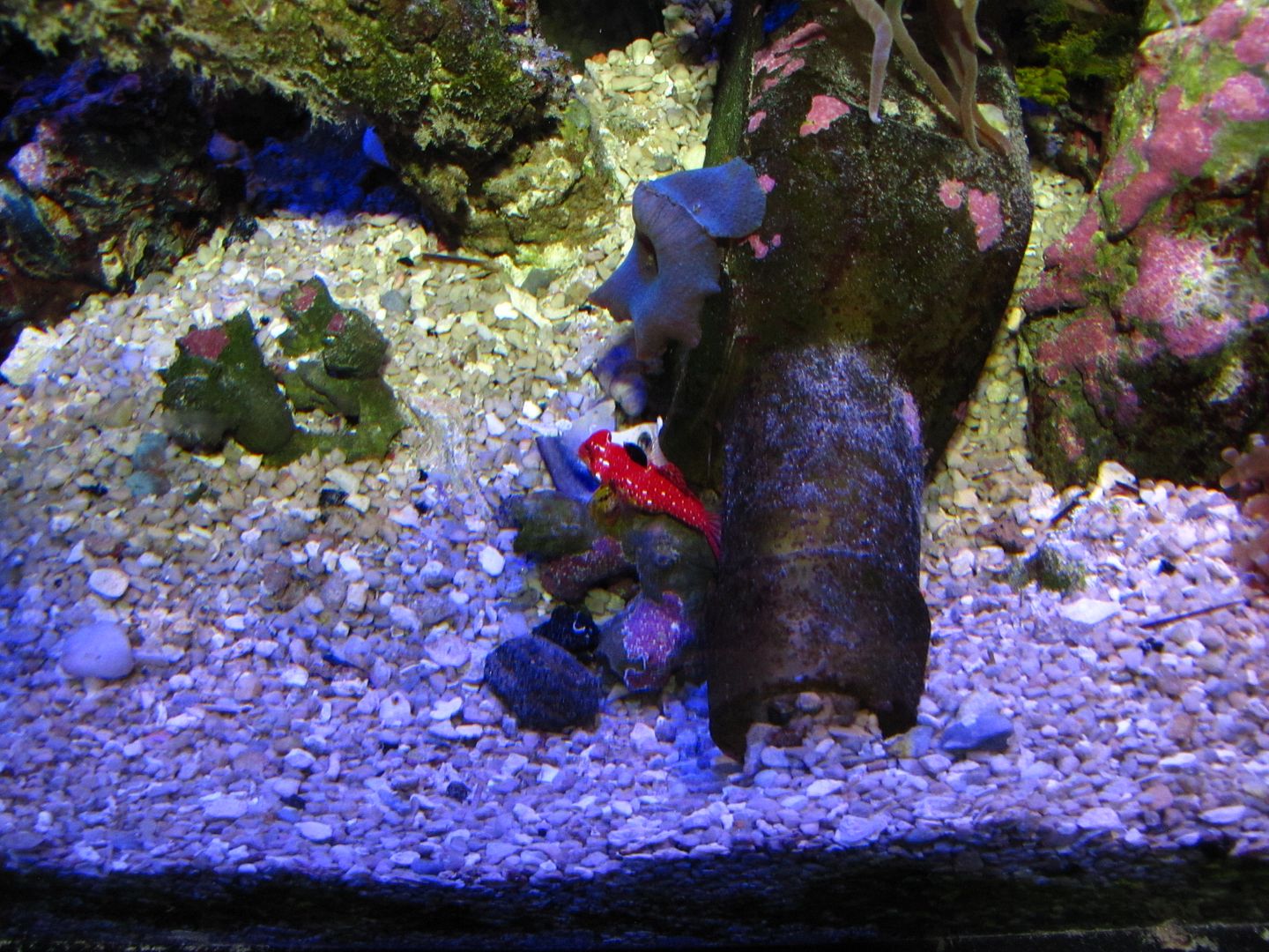 For people who want dragonettes like this little female Ruby Red, scooter bleeny or mandarins, just look at how many pods she can eat in a couple of minutes........Thousands a day so unless you want to go broke buying pods, an aged tank is best.
