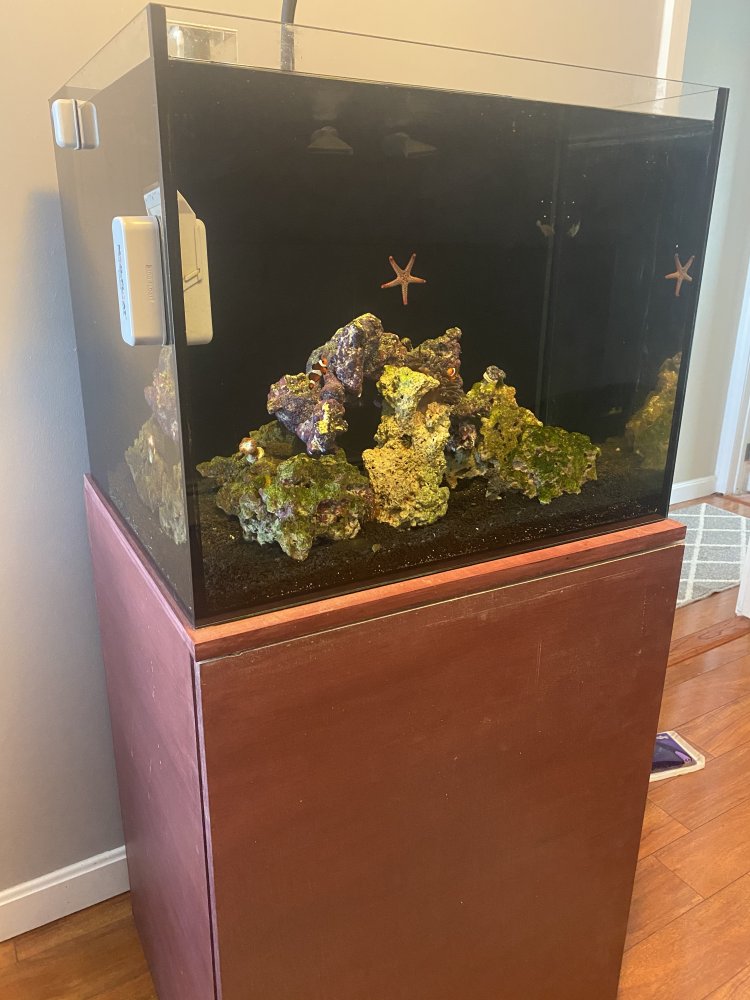 I have a 40 gallon Innovative Marine Cube Tank for sale with a stand. It comes with 2 filter socks that have been used once, a heater, an automatic fish feeder, and a chamber basket.