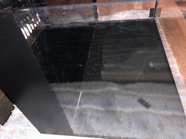 It’s hard to see in the photos but there are some noticeable scratches. Fairly large and noticeable scratch on the left pane from moving a frag rack. Front pane has scratches that aren’t too noticeable including one larger thin curved moon shape scratch. Right pane has a smaller but noticeable scratch. Micro scratches here and there. Noticeable water line deposits.