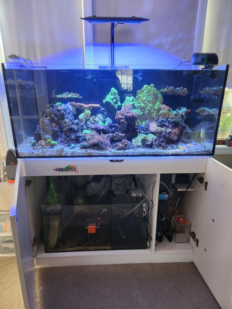 Two tanks. One is 55 gallon. Mostly fish only. The second one is 135 gallon waterbox mixed reef tank. Thank you all for accepting me and my tanks