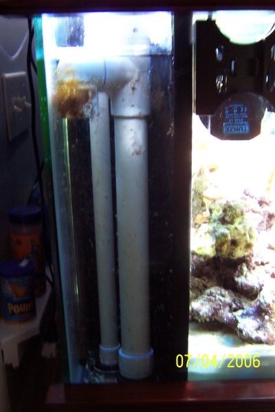 Now I just gotta plumb the return lines, then figure out what to do with the end of the 2" drain line as it dumps into the sump (a 100g Rubbermaid horse trough). I've seen people use a bucket to make a bubble trap. Gotta research that one.
