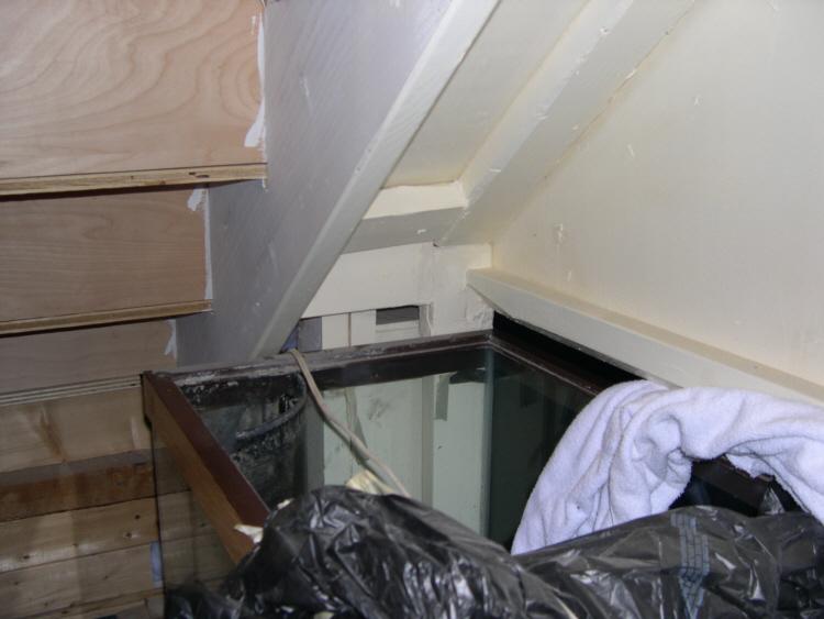 Here's the back corner on the right side (when viewed from the front). There ain't much room to drill the side and plumb a line in that way.