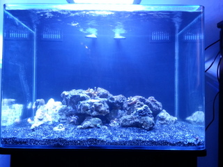 Made a leap today from my 14 gal Bio Cube to a JBJ 30 gal rimless with leds! I like the footprint as its wider than taller. Has 2 return pumps instead of the usual one. Not too sure about the light yet. Already thinking of upgrading to a better light. I like the look and color of the Maxpect Razor 16000k. I have moved my sandbead and live rock over to the JBJ. Waiting for it to clear up before I add anything else. Looking good so far. Plenty of room for everything Im thinking of putting in the tank pluss will be more stable than the "14" gallon biocube (after sand, liverock it only took 10 gallons) Pics to come