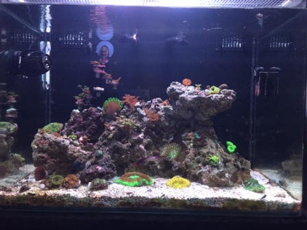 Haven't shared any pics of my tank in a while so I figured I'd add some more. I just recently picked up some of the amber/yellow film that you can put across your camera lens to reduce the amount of blue LED that comes through and it does a much better job showing what my tank actually looks like when I use my iphone for pictures now.