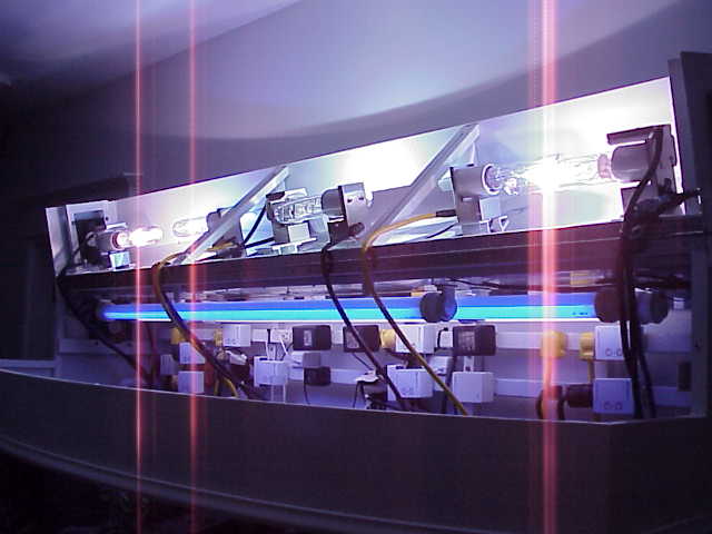 That is a custom built & designed hood by me!!! :D I can't seem to find all the pics right now of the process but I have them somewhere. All alluminum construction with 6 metal halides & 4 VHO. 1865 watts not including the Led high intesity moonlights. It is on a 155 bowfront.