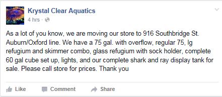Krystal Clear Aquatics is Moving!!