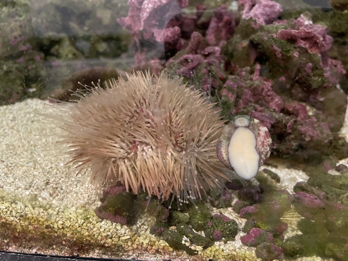 Free or buy be a coffee, otherwise he is headed to All Things Aquatic at 2pm today. I caught him, and have him at the Navy Base in Newport RI. Beautiful healthy urchin, I just wanted a smaller one.