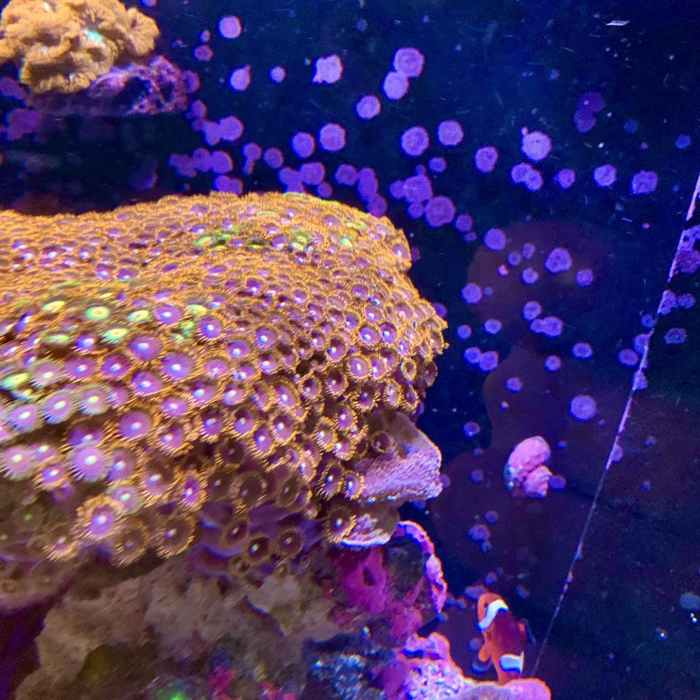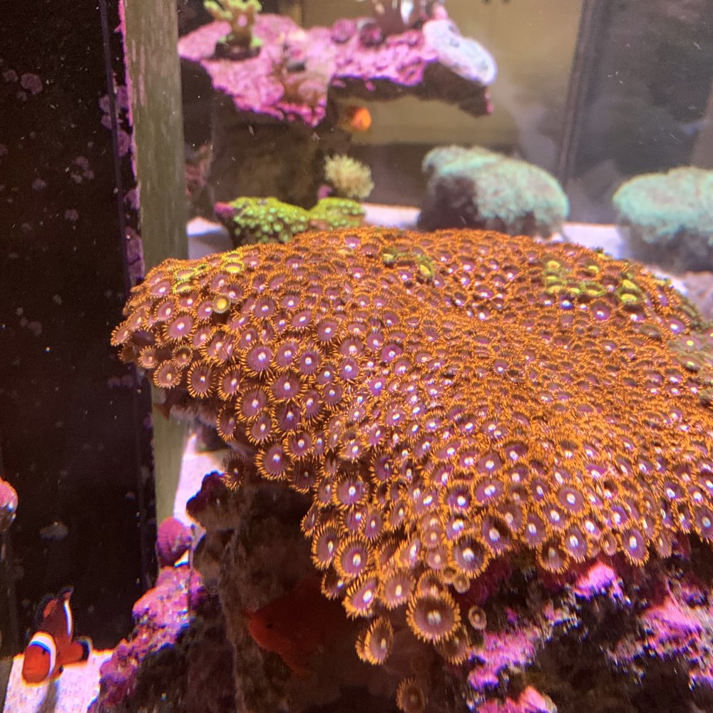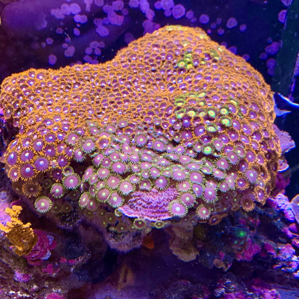 Large Zoa colony for sale. 4 different types of Zoa’s and a purple monti on this large rock. Bottom of rock is covered in feather dusters. Please see picture with yellow line to see outline of rock. Measures about 10” x 10” x 6”. I am only available for pickup on the weekend. Pickup in Whitman near commuter rail station. Pickup only.