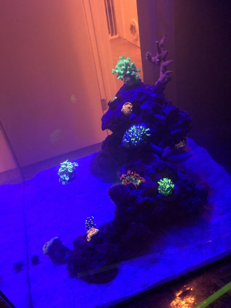my dad @Seantc130 got a pink purple pavona and some Rasta’s for our 72g. Very happy with purchase, corals are popping!