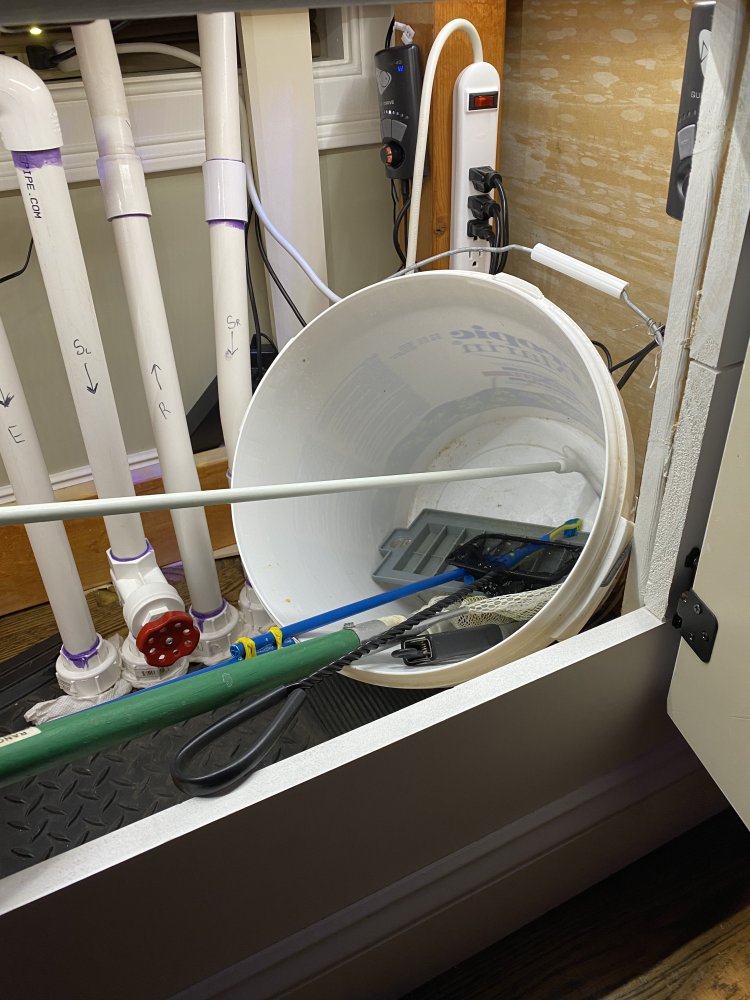 2. Bucket mounted under tank (assuming you have room) for wet tools - mounted at an angle helps to have the space to move things in and out