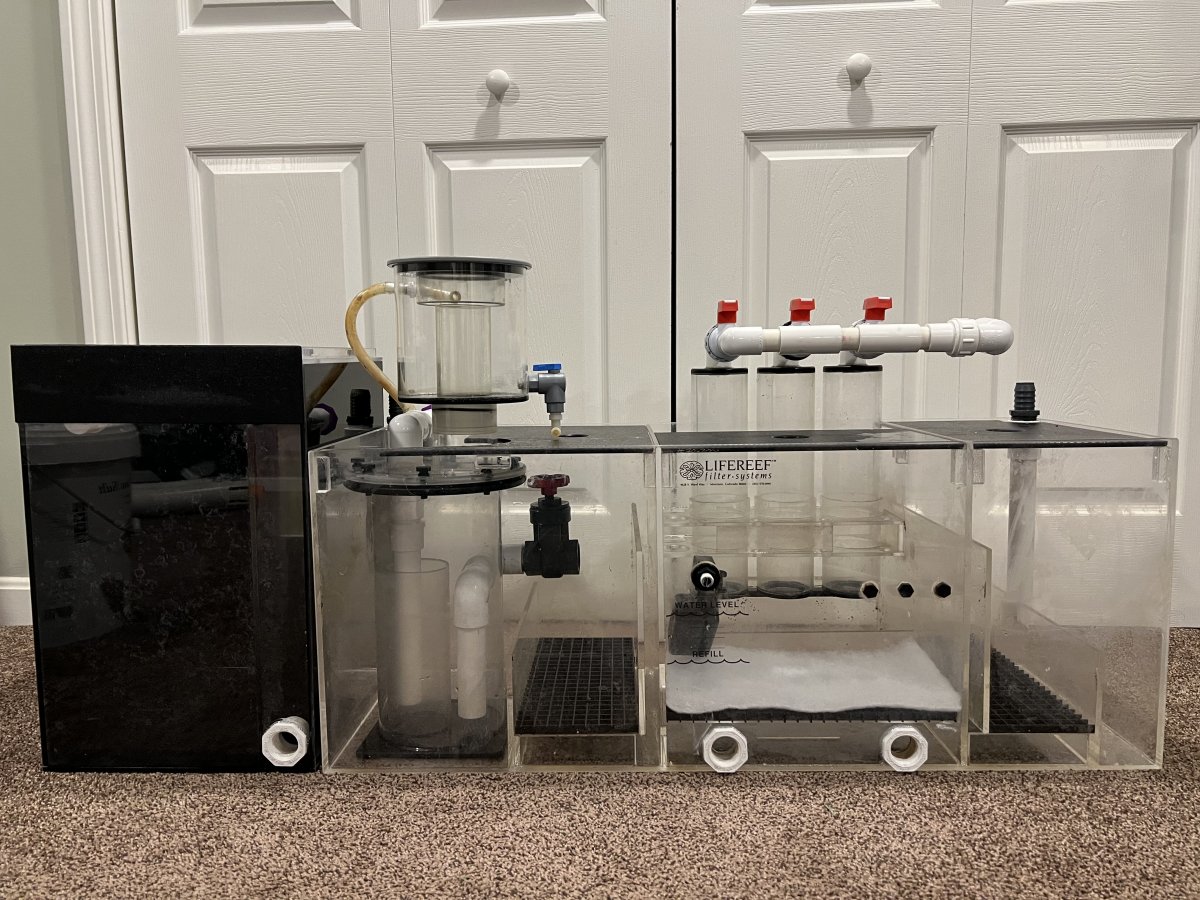 In the midst of a new build with a new custom LifeReef sump and need to move my previous sump, skimmer, reactors and refugium (all LifeReef). Sump is a LF1-200S (36x13x14) with three media reactors, skimmer is newer (take apart) SVS3-24 along with a 12” LifeRefugium. You can check out more details on Jeff’s site http://www.lifereef.com/berlin.html . All for $500.00 firm. A new skimmer alone is $554. All had a good vinegar bath and a power wash.