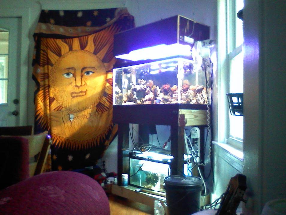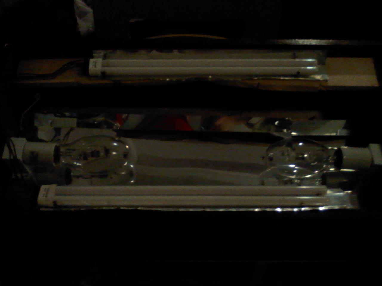 I just a week ago upgraded to Mh lights! Bring on sps!!! i have two 175w singal ended bulbs and two 65w pc actinic. Am i crazy at 480w over a 50g breeder 9.6w per gallon? should i unscrew a bulb? its not a fixture...i built the canopy...it is pictured below...my refug loves my 65wpc some times two 65w bulbs it grows like wild fire any one want some? Also my hippo wont lose ick since the move i am going to the isle in the morning to better test my water. Maby i should post him for trade for a wrasse i want to get my first...