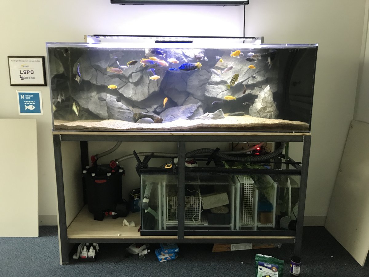 As some of you know, because you’ve graciously donated, I run aquarium clubs at my High School (Lincoln Sudbury) and my sons Elementary school (Page Hilltop). At my High School, the kids have decided to convert a 180gal Cichlid Tank to a FOWLR then Reef Tank (see photo). The tank is maintained by our student club which started in 2018, and they are looking to learn more about Saltwater and Reef Life. Cichlids were good to us, but time to expand. It was inevitable once they saw my tanks at home . The Tank is located in the Main hallway where students can sit and do homework or relax between classes. Its been a great addition to the school climate. I am looking for 100lbs of dry or Live Rock, 100lbs of live sand and a few buckets of Salt Mix to start the conversation. If you have extra laying around of any of these items that you’d like to sell at an affordable price or willing to donate, please let me know.