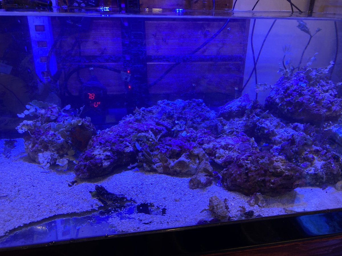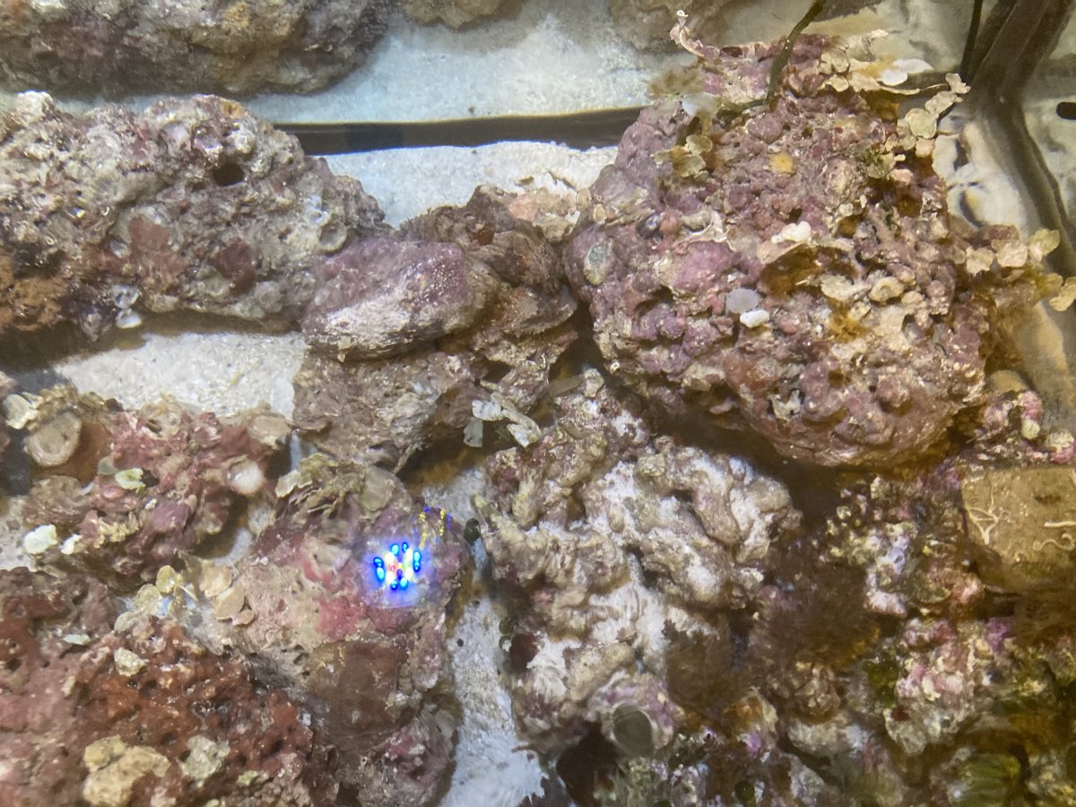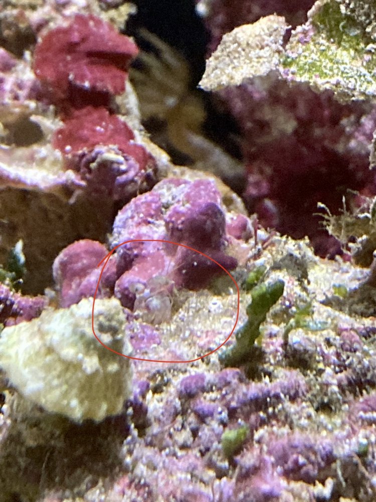 Live rock is cycled close to 100% nh3 0 and no2 close to 0 I would say 0.01 it was barely perceptible. I used fritzz bacteria minimal death I’m pleasantly surprised. Lots of life, turkey clams and torny oysters. Sadly a white tube coral bleached, hopefully some cells will survive. Of course now that I transferred a few astrea and hermit crabs and a tiny peppermint shrimp,looks who shows up……