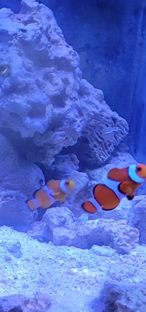 Lost one of my clowns and trying to get the remaining fish a hopeful mate. Trying to find a mate for the smaller clown in this picture.